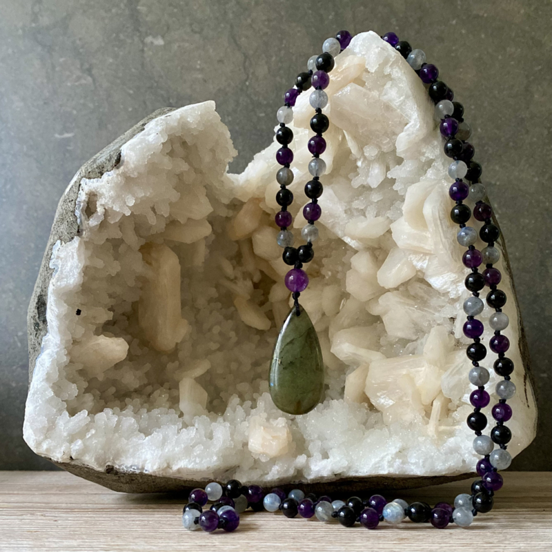 Zwarte Toermalijn-Labradoriet-Amethist Mala