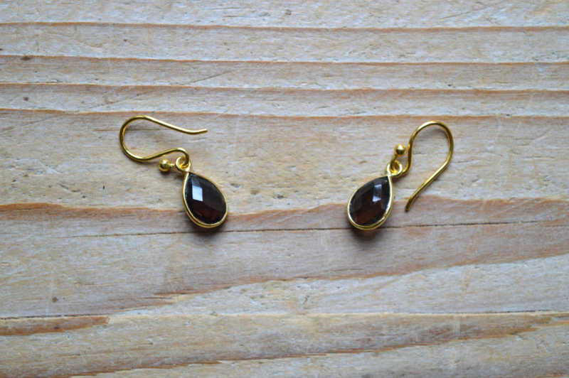 Verguld Sterling zilver Oorbellen met Rookkwarts