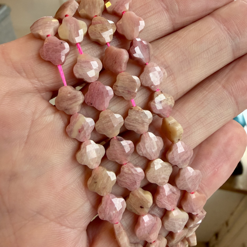 Rhodoniet gefacetteerde klavertjes ca. 8 mm
