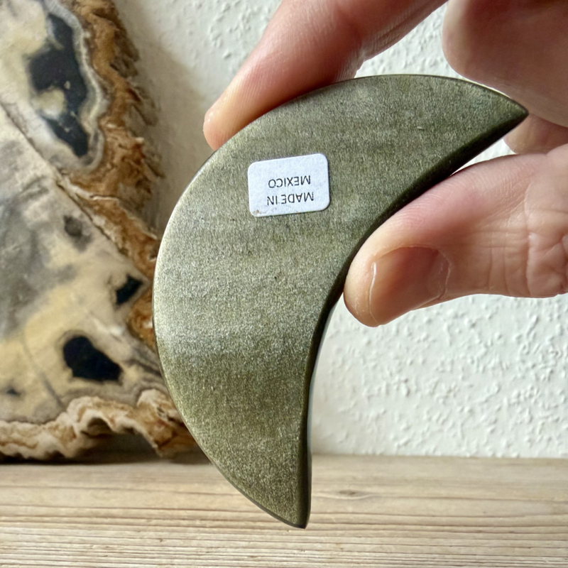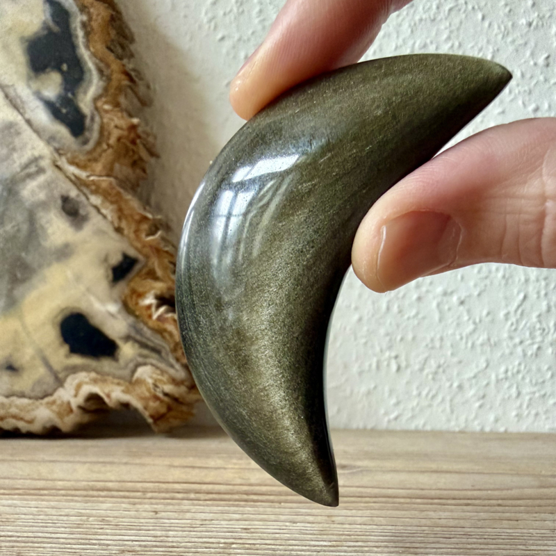 Prachtige, gepolijste maan van Goud Obsidiaan uit Mexico. Je krijgt het exemplaar van de foto.
