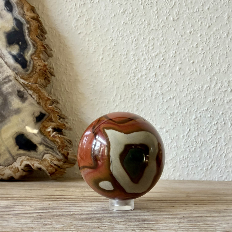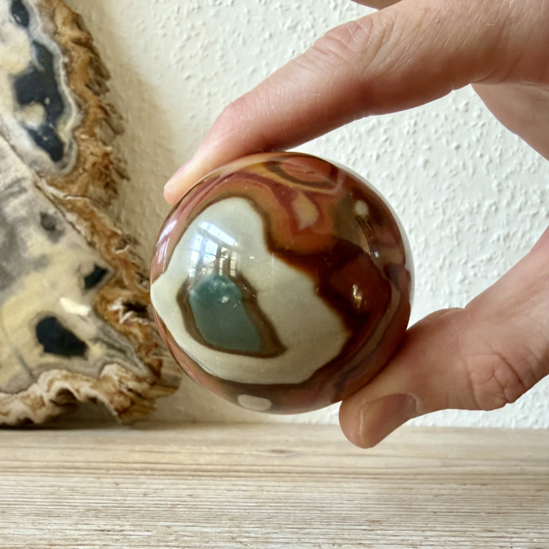 Prachtige kwaliteit Polychroom Jaspis bol uit Madagascar. Je krijgt het exemplaar van de foto.