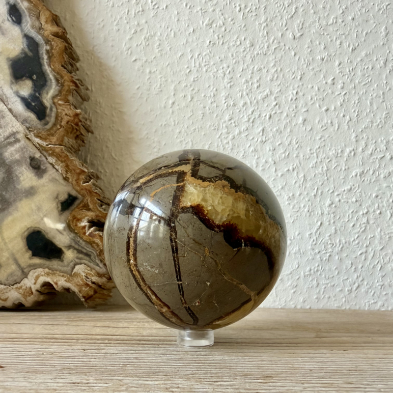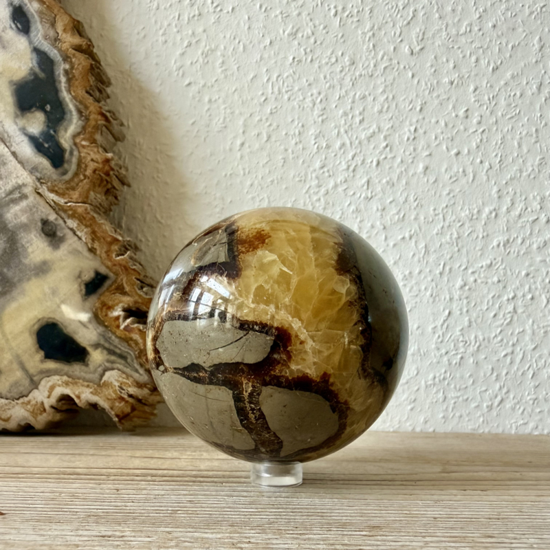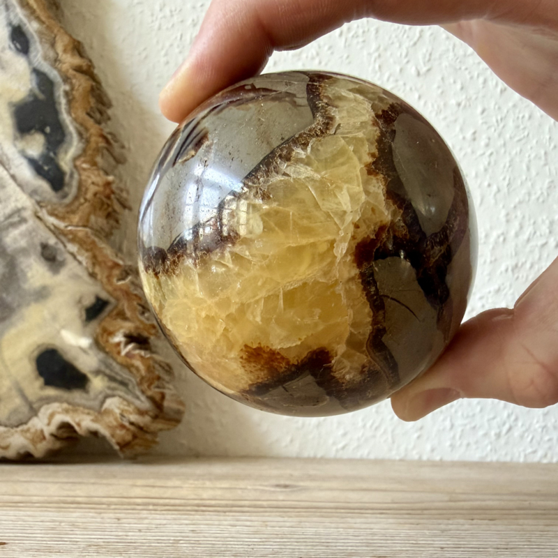 Prachtige kwaliteit Septarie bol, met gele Calciet, uit Madagascar. Je krijgt het exemplaar van de foto.