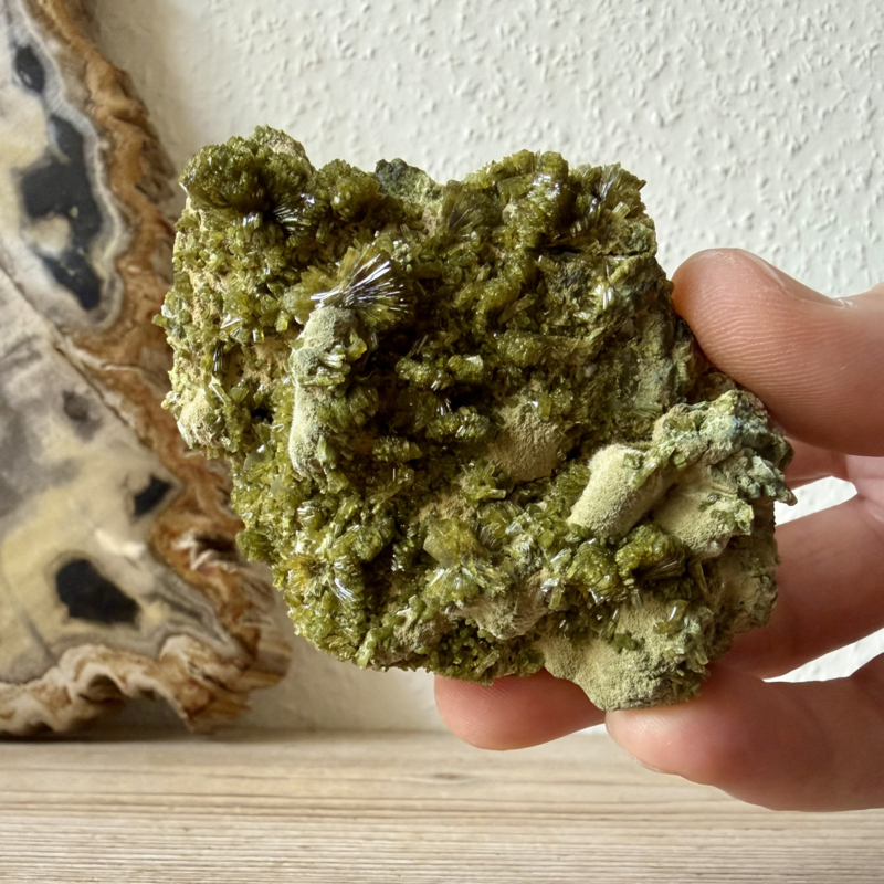 Prachtig Epidoot cluster uit Marokko. Je krijgt het stuk van de foto.
