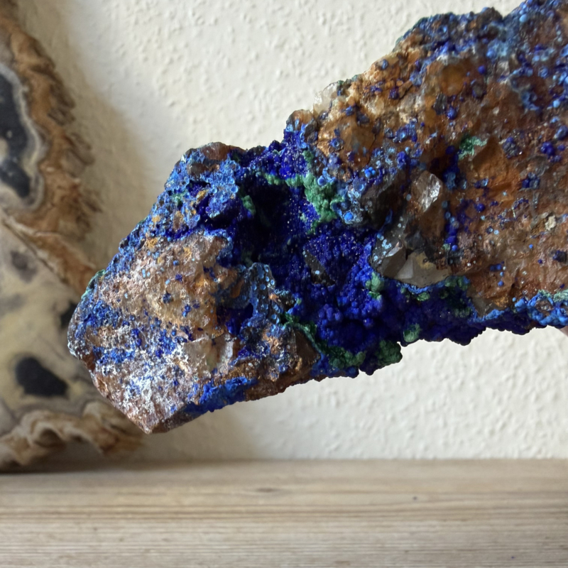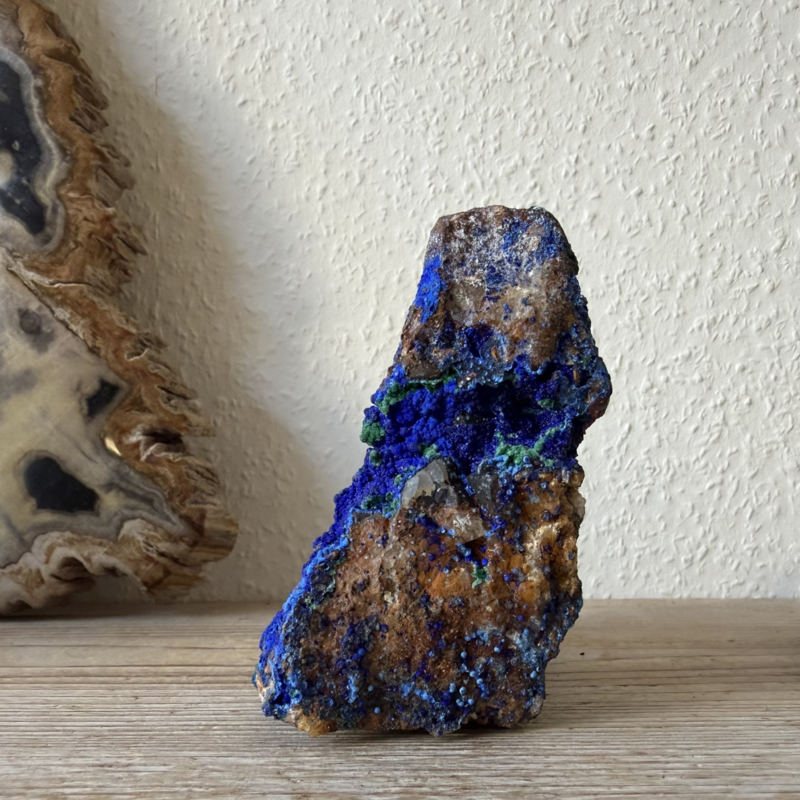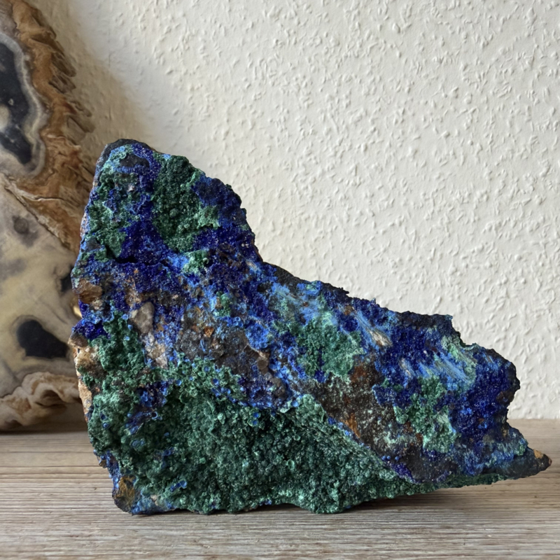 Prachtig uniek stuk ruwe Azuriet met Malachiet uit Marokko. Je krijgt het stuk van de foto.