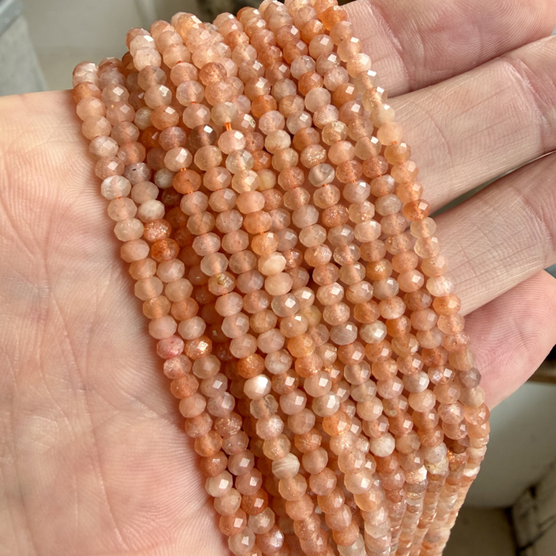Zonnesteen gefacetteerde rondellen ca. 3 x 4 mm