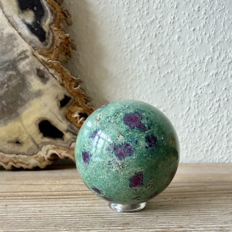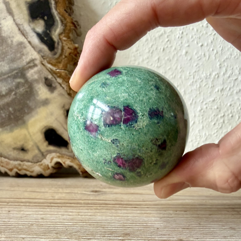 Prachtige Robijn in Fuchsiet bol uit India. Je krijgt de bol van de foto.