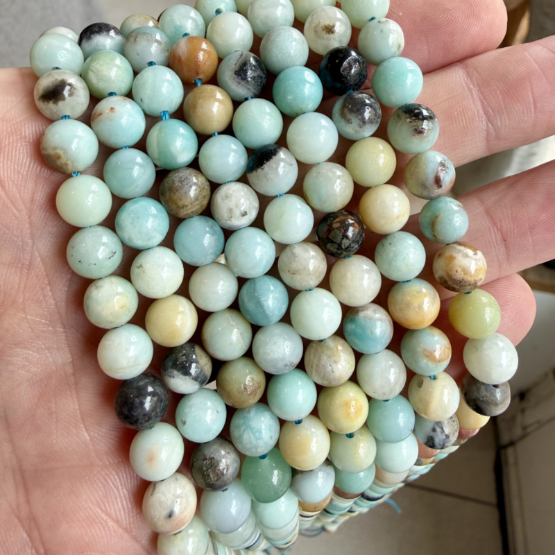 Meerkleurig amazoniet ronde kralen ca. 8 mm