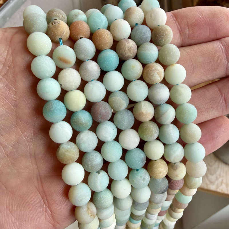 Meerkleurig amazoniet MAT ronde kralen ca. 8 mm