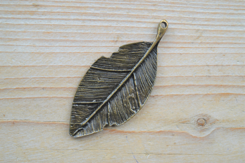 Bronskleurige hanger blad ca. 33 x 74 mm