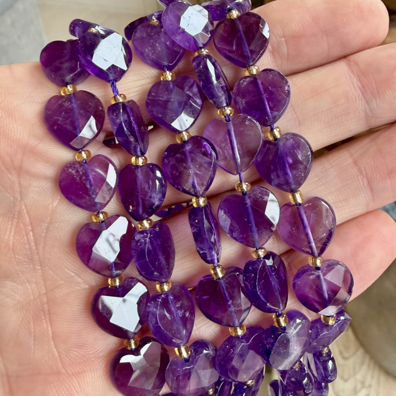 Amethist gefacetteerde platte hartjes ca. 12 mm A klasse