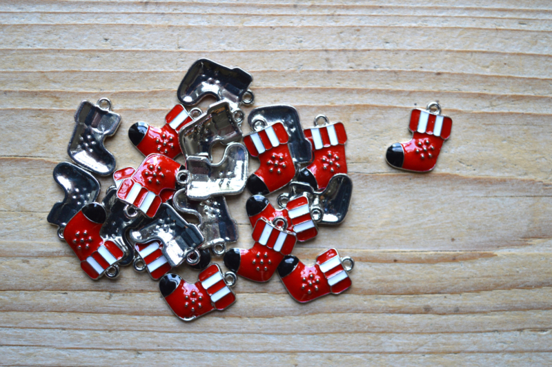 Metalen bedel Kerstsok ca. 15 x 19 mm per stuk