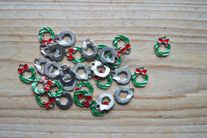 Metalen bedel Kerstkrans ca. 12 x 15 mm per stuk