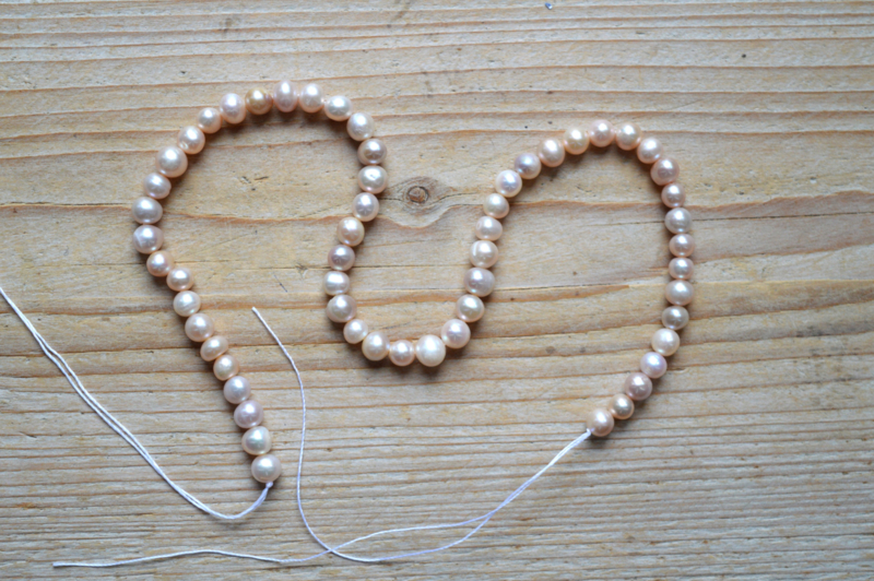 De lengte van de strengen zoetwaterparels is ca. 35cm.