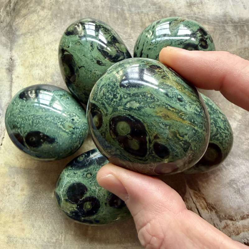 Kambaba Jaspis/Eldariet handsteenPrachtige handgeslepen Rookkwarts handstenen uit Madagascar. Wij selecteren een mooie voor je.