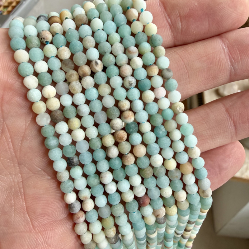 Mehrfarbig Amazoniet MATT runde Perlen 4 mm